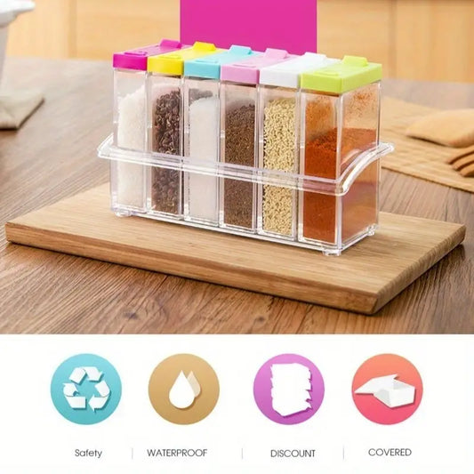 6-Piece Spice Organizer With Stand, Colored Lids And Multi Functions